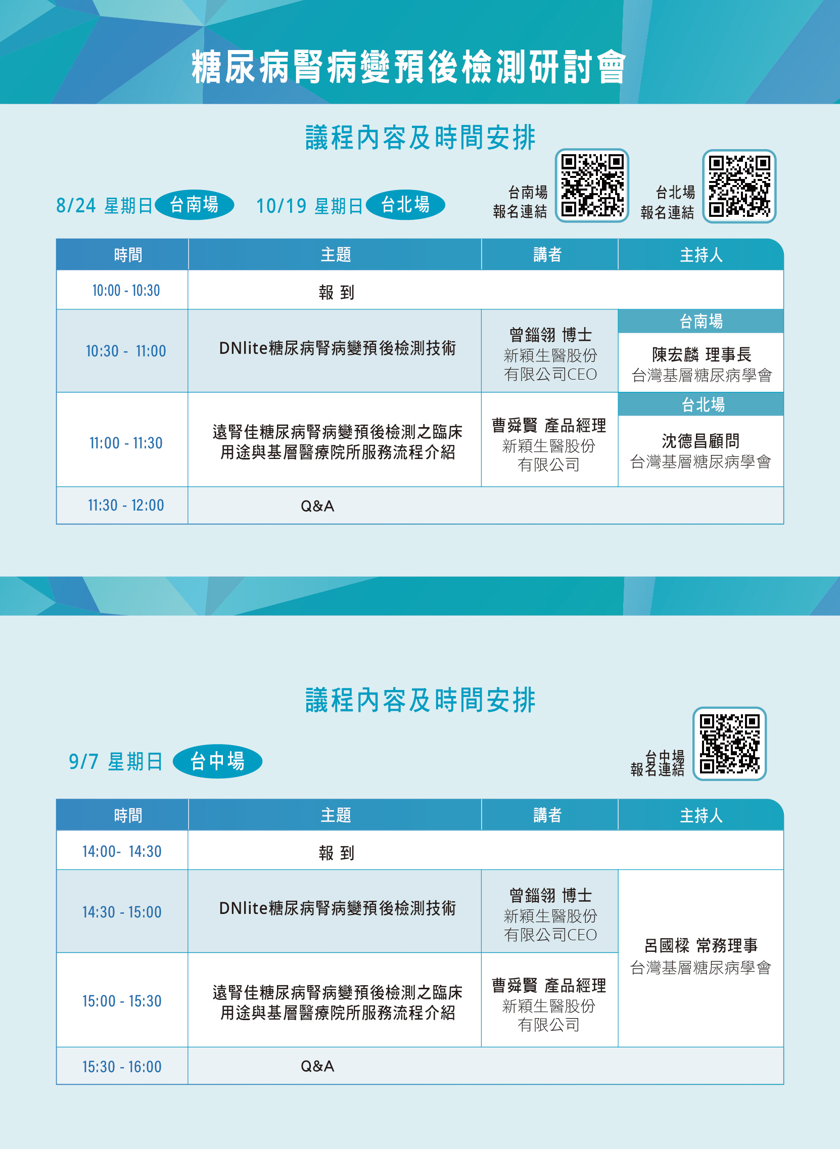 由 台灣基層糖尿病學會 主辦、新穎生醫 協辦,深入探討糖尿病腎病變的最新預後檢測與臨床應用。